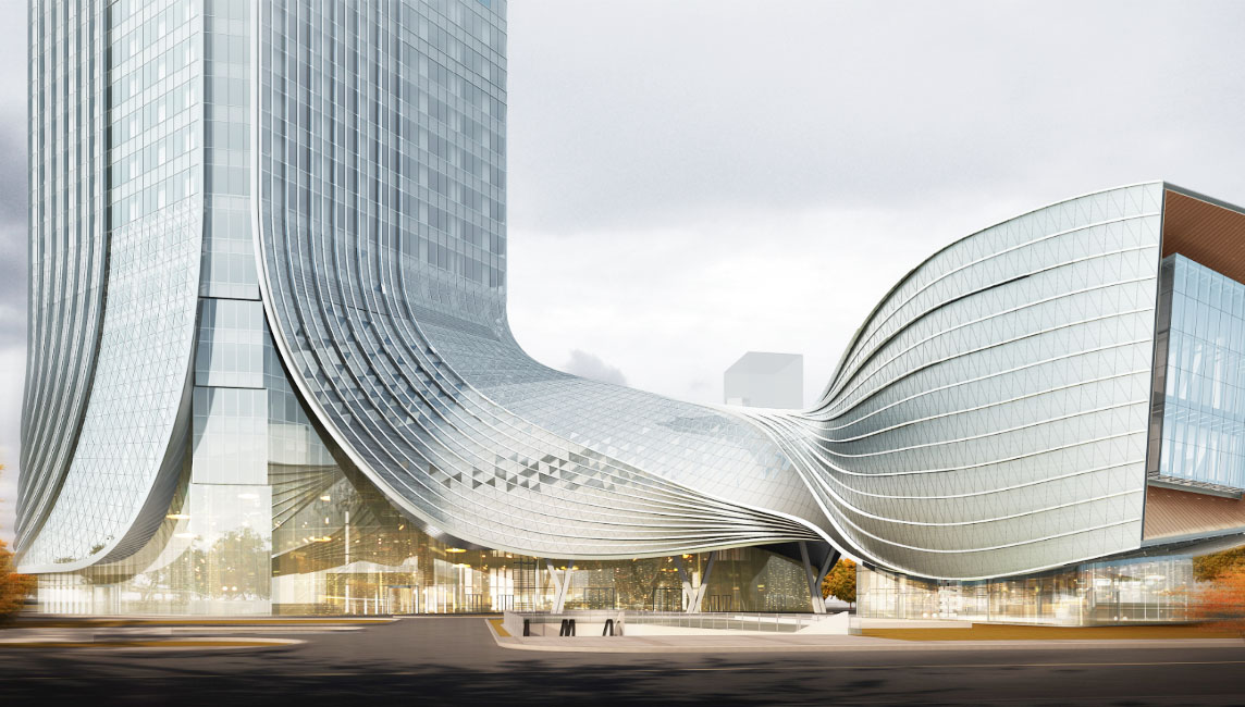 本工程位于珠海十字門中央商務(wù)區(qū)橫琴片區(qū)離岸金融島8號(hào)地塊,建筑面積約219220平方米,其中地上建筑面積約138531平方米,地下建筑面積約80689平方米。地上69層、地下4層。主要建設(shè)內(nèi)容為甲級寫字樓、配套會(huì)展功能、商務(wù)公寓及商業(yè)服務(wù)設(shè)施。該項(xiàng)目取“蛟龍出海”的設(shè)計(jì)理念,裙樓部分體型尤其洄還扭轉(zhuǎn)、動(dòng)感萬千;材料層次多、交錯(cuò)復(fù)雜,設(shè)計(jì)及施工難度極大。
