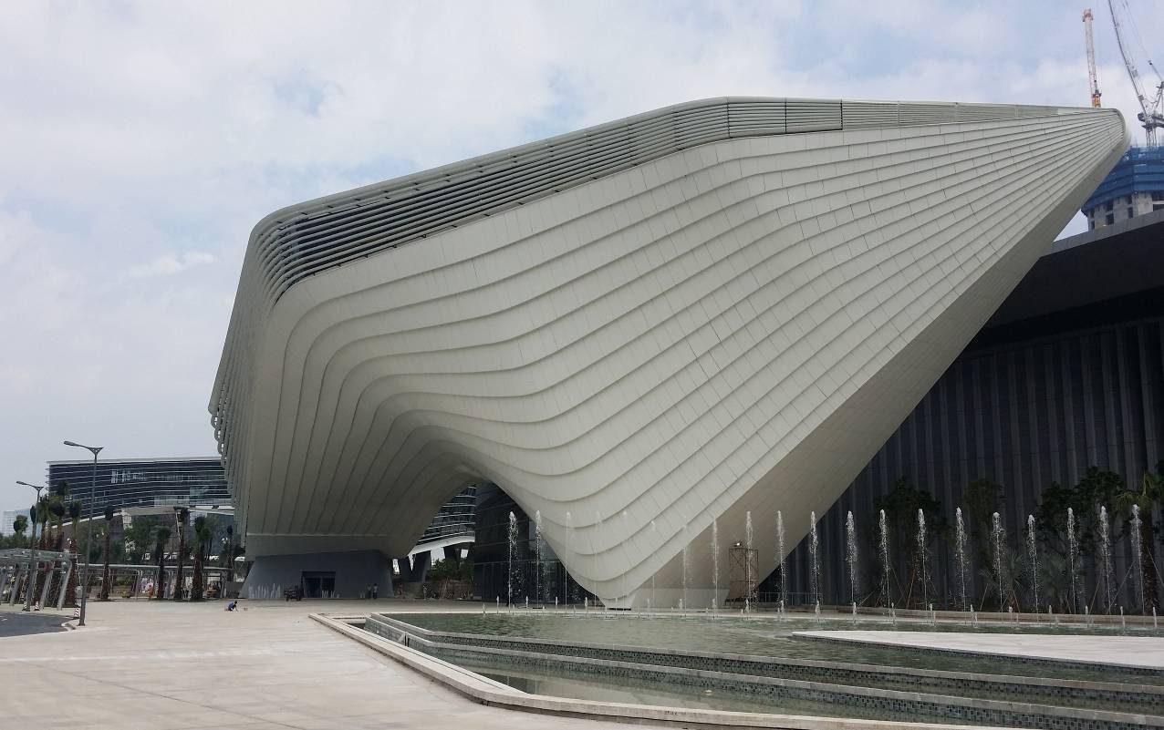 珠橫珠海十字門中央商務工程是廣東省大橫琴區開發的牽頭項目,其中商務組團的入口和城市綢帶項目為整體規劃項目中的“門戶”項目和最為復雜的“高難度核心”項目。幕墻面積3萬平米,包含空間多維曲面鋁板、大板塊中空夾膠鋼化玻璃板塊、空間扭曲百葉造型等高技術含量的項目。另外,該項目設計理念為一條風中委婉飄逸的綢帶,整體造型隨意無規律,施工和設計中需要大量的計算機3D技術結合現場數字測量技術,是既深圳創展中心和九江文化藝術中心之后,晶藝公司又一空間異形建筑工程力作。該項目在該片區在眾多工程中被同行業和其他相關方公認為技術要求最難、最復雜但完效果最好且最先施工完畢的項目。